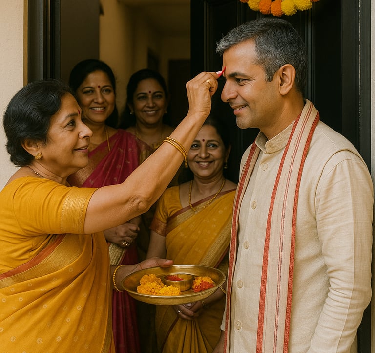 The Bhaat ceremony is a heartfelt tradition in which the maternal uncle (Mama) of the groom (or bride) plays a central role. It is his symbolic gesture of love, responsibility, and blessing towards his sister (the groom’s mother) and her son (the groom).